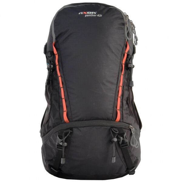 Az Axon márka termékcsaládjába tartozó Panther sporthátizsák egy univerzális társ, mely felkelti az érdeklődést rengeteg zsebével és kényelmes, párnázott hátrészével.   Az Axon Panther hátizsák felkelti az érdeklődést rengeteg zsebével, kényelmes, párnázott hátrészével és elválasztható alsó kamrájával. A hátizsák tartós 420D poliészter ripstop anyagból készült, mely ellenálló a kopással és szakadással szemben. 38 literes űrtartalma magába fogadja az összes nélkülözhetetlen holmidat. Térfogatával a közepes méretű hátizsákok kategóriájába tartozik, de rengeteg zsebének, kompressziós hevedereinek és tartóinak hála sokkal több felszerelést szállíthatsz vele, mint elsőre gondolnád. Továbbá értékelni fogod elválasztható alsó kamráját, mely külön nyitható, így a táska aljára kerülő holmikhoz is gyorsan hozzáférhetsz. Párnázott, szellős ACS hátrendszere maximális kényelmet garantál, a derékheveder és a légáteresztő vállpántok még kellemesebbé teszik a viseletét. A síp és fényvisszaverő elemek magától értetődőek. A hátizsák víztasakkal kompatibilis. Az Axon Panther hátizsák fő előnyei: párnázott ACS hátrendszer elválasztható, külön nyitható alsó kamra légáteresztő vállpántok állítható mellheveder víztasakra előkészítve 8 zseb 2 elülső cipzáras zseb oldalsó hálós zsebek fényvisszaverő elemek kompressziós hevederek síp
